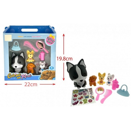Set de jeu chiots et accessoires pour des heures de divertissement ! Cet ensemble est parfait pour les enfants qui aiment les animaux.
