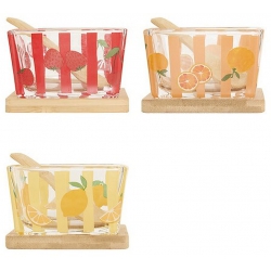 VERRINE FRUITY VERRE AVEC CUILLERE ET PLATEAU BAMBOU