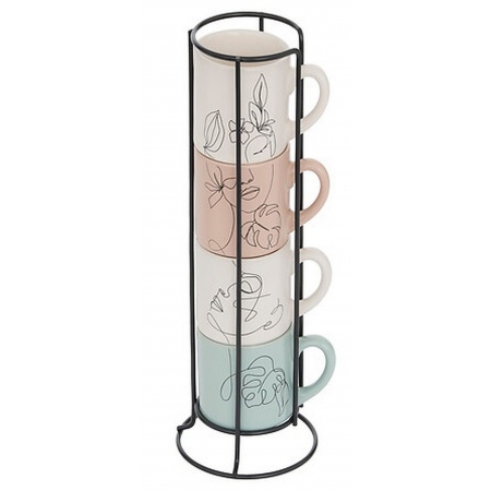 COFFRET RACK 4 MUGS VISAGE 12 CL Packaging: BOITE KRAFT IMPRIMEE OUVERTE