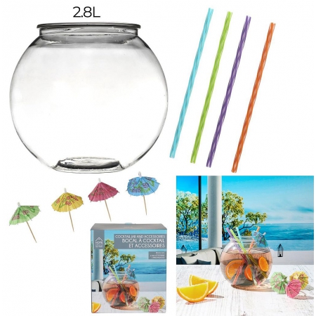 BOCAL A COCKTAIL 4 PAILLES ET MINI PARASOL