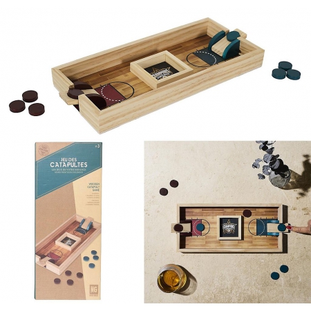 Le jeu de lancer de jetons en bois est une activité ludique et conviviale qui met à l’épreuve l’adresse et la précision. Composé d’un plateau en bois avec deux catapultes opposées et des jetons colorés, le but est de catapulter ses jetons dans les zones cibles prévues à cet effet. Idéal pour des parties rapides et amusantes en famille ou entre amis, ce jeu allie simplicité, compétition et éclats de rire. Son design en bois naturel lui confère un charme authentique et en fait un bel objet de jeu à exposer.