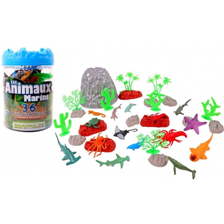 BARIL ANIMAUX MARINS AVEC DECOR 36 PIECES Dimension du baril : 20*13*13 cm