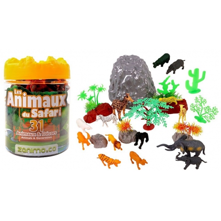BARIL ANIMAUX DE LA JUNGLE 31 PIECES AVEC DECORS Baril : 18*13*13 cm