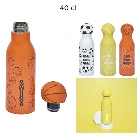 Pratique, stylée et pensée pour les passionnés de sport, la bouteille isotherme Swiigo Sport 40 cl accompagne petits et grands sur tous les terrains ! Avec ses décors et sa tête en silicone football, basket et tennis, elle motive et donne envie de bouger.