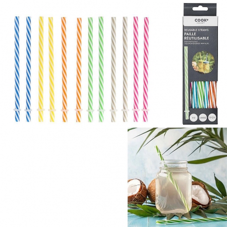 Dégustez vos boissons avec style grâce à cet assortiment de pailles réutilisables ! Les couleurs et le modèle suivent la tendance pour donner un air de fête à vos tablées. Les pailles s'adapteront parfaitement à vos bocaux Mason jar